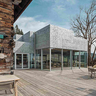 » „Unser Aluminiumschaum ALUSION™, ein außergewöhnliches Material, das auch bereits bei preis gekrönten Projekten wie der Fassade der Hauptpost in Augsburg oder wie hier im alpinen Kontext – etwa am Steirereck am Pogusch – eingesetzt wurde. Damit entwickeln wir materialbasierte Gestaltungslösungen an der Schnittstelle von Innenausbau und Fassadenbau.“