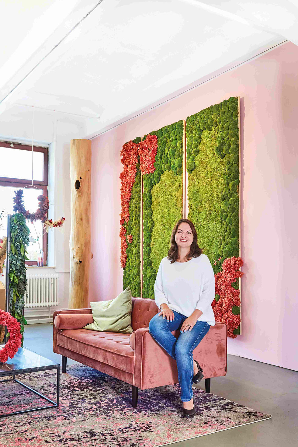 » Freund ist bekannt für struktur- starke Naturoberflächen. Mit innovativen Werkstoffen entstehen hier außergewöhnliche Raum- und Fassadenkonzepte, die Materialität, Haptik und architektonischen Ausdruck präzise miteinander verbinden – von atmosphärischen Innenräumen bis hin zu markanten Gebäudehüllen“, strahlt die Diplom-Kauffrau mit BWL-Studium, die für Privatkunden und Unternehmen wie Hotels arbeitet. » Längst zieren Außenfassaden und Innenwände von Freund Räumlichkeiten in aller Welt. „Moos und Rinde bieten hervorragende Materialien für Akustik und Brandschutz. Wir konservieren nach einer eigens von uns entwickelten Methode und gewährleisten so den Brandschutz.“ Immergrüne Raumkunst mit Sicherheitsfaktor. » Man kann nur staunen, was Nina Freund, Chefin in zweiter Generation des Familienunternehmens, aus der Firma gemacht hat. Angefangen hat es vor über 40 Jahren – spezialisiert auf Akustik und Brandschutz. Heute ist man Multiplayer, der niemals seine Wurzeln vergessen hat. Dann auf zu weiteren Höhen.